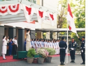 dr. Ludy Hammami Handojo selaku Direktur Akademi Keperawatan Adi Husada Surabaya menjadi Inspektur Upacara peringatan Hari Kemerdekaan (HUT) Ke-69 Negara Kesatuan Republik Indonesia (RI) Tahun 2014 di halaman Gedung AMC (Adi Husada Medical Center) Rumah Sakit Adi Husada Undaan Wetan.