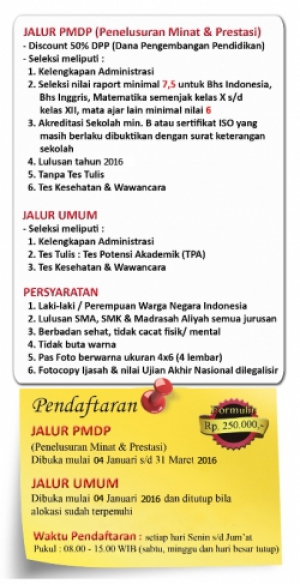 Telah dibuka pendaftaran penerimaan mahasiswa baru tahun ajaran 2016/2017 silahkan daftarkan diri menjadi calon tenaga kesehatan khususnya Perawat dimana saat ini banyak dibutuhkan tenaga ahli profesional sebagai perawat di rumah sakit, tersedia dua jalur yaitu prestasi dan reguler :
