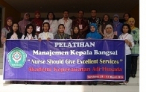 Dengan melihat masalah di atas Akademi Keperawatan Adi Husada telah mengadakan Pelatihan Manajemen Kepala Bangsal dengan topik "Penerapan Peran dan Fungsi Manajemen Kepala Bangsal dalam keselamatan pasien di Unit Rawat Inap". Pelatihan telah berlangsung selama 3 hari pada hari Selasa s/d Kamis tanggal 11 - 13 Maret 2014 di Ruang Kelas lantai 3 Gedung B Akademi Keperawatan Adi Husada dan menggunakan lahan praktikum di RS. Adi Husada Undaan Wetan & RS. Adi Husada Kapasari, peserta yang terdaftar mencapai 19 orang.