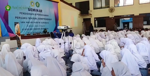 Seminar Pendidikan dan Pencegahan Perilaku Seksual Komprehensif SMK Wachid Hasyim Surabaya @smkwachidhasyim bekerja sama dengan STIKes Adi Husada Surabaya pada tanggal 18 September 2023 di Aula SMK Wachid Hasyim Surabaya
