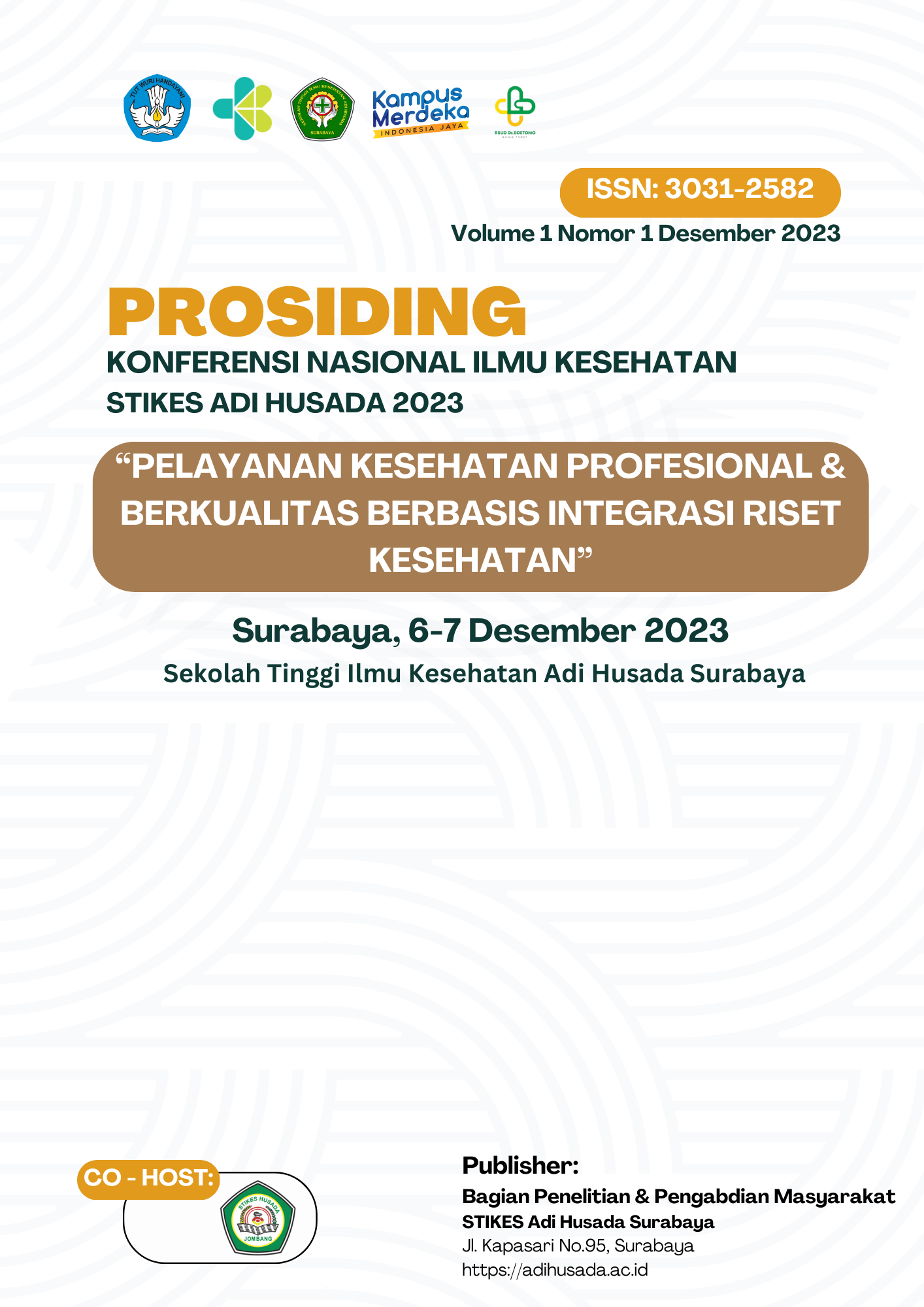 Vol 1 No 1 (2023)Prosiding Konferensi Nasional Ilmu Kesehatan STIKES Adi Husada yang pertama ini merupakan kumpulan artikel yang telah dilakukan oral presentasi dihadapan peserta konferensi pada tanggal 7 Desember 2023 sesuai dengan SK Kegiatan Konferensi Nasional Ilmu Kesehatan oleh Ketua STIKES Adi Husada nomor: 125/SK/STIKES-AH/VIII/2023.